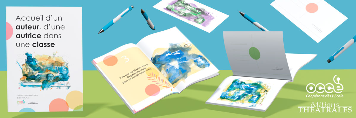 Imaginé comme une « petite correspondance fictive » entre une classe et l’OCCE, cet ouvrage coloré se présente sous forme de lettres et cartes postales (détachables), illustrées par Vincent Debats. Il est destiné, bien sûr aux enseignants, mais assurément aussi aux enfants et adolescents à l’école, aux auteurs invités et à toute personne curieuse des relations entre monde de l’école et celui de la littérature de jeunesse.